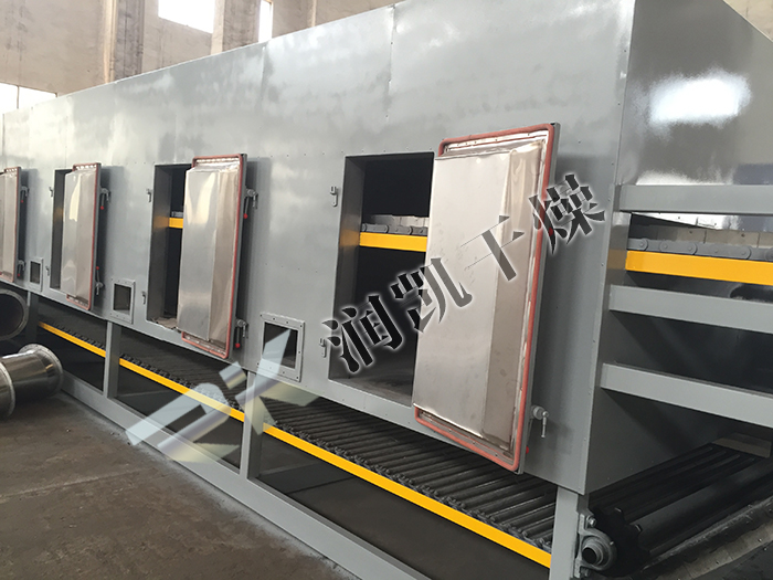 d) 網(wǎng)帶寬度較大,因此需注意熱風(fēng)的分配問(wèn)題,保證產(chǎn)品質(zhì)量穩(wěn)定。同時(shí)需保證熱風(fēng)能全部穿過(guò)物料,防止漏風(fēng)。