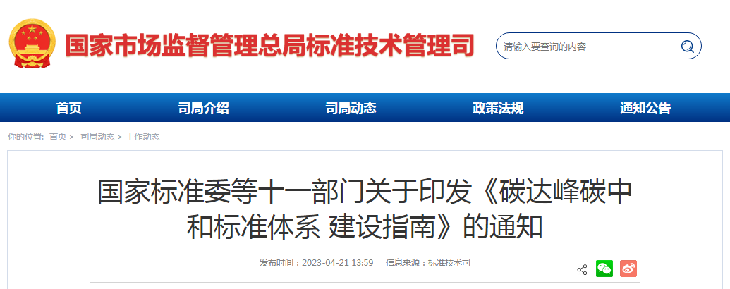 4月21日,國家標準委聯(lián)合國家發(fā)展改革委、工業(yè)和信息化部等部門發(fā)布了《碳達峰碳中和標準體系建設指南》(下簡稱《指南》),明確了碳達峰碳中和標準化工作重點,支撐能源、工業(yè)、交通運輸、城鄉(xiāng)建設、農(nóng)業(yè)農(nóng)村、林業(yè)草原、金融、公共機構(gòu)、居民生活等重點行業(yè)和領(lǐng)域?qū)崿F(xiàn)綠色低碳發(fā)展,推動實現(xiàn)各類標準協(xié)調(diào)發(fā)展。